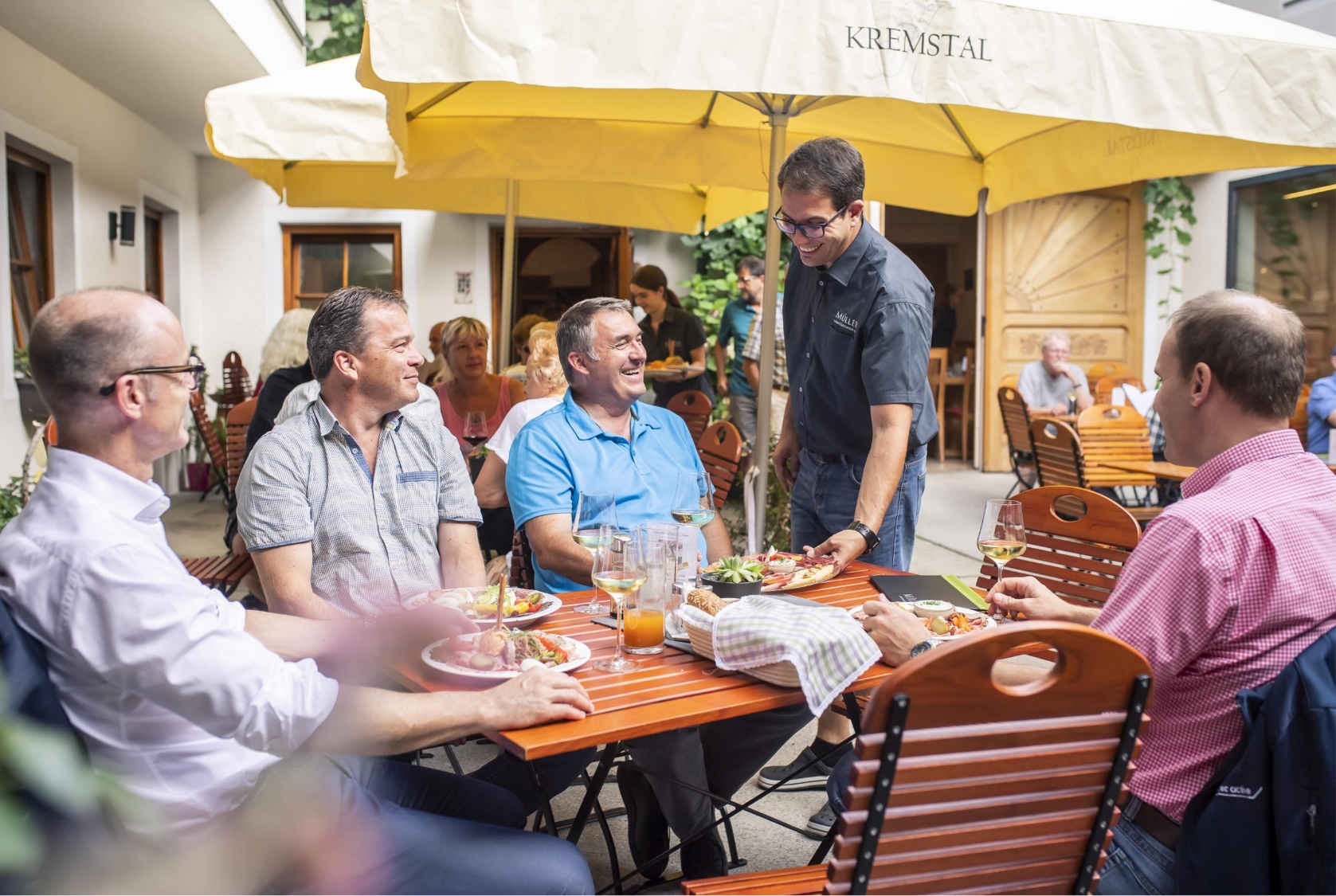 Andere haben einen Heurigen – wir machen Heurigen. Ein wichtiger Unterschied, finden wir. Wie beim Wein so beim Heurigen: Jeden Handgriff machen wir selbst. Den Liptauer. Die Blunz’n und das Bratl. Neben den Klassikern gibt’s immer noch etwas Saisonales. Und alle unsere Weine offen in der Ausschank.